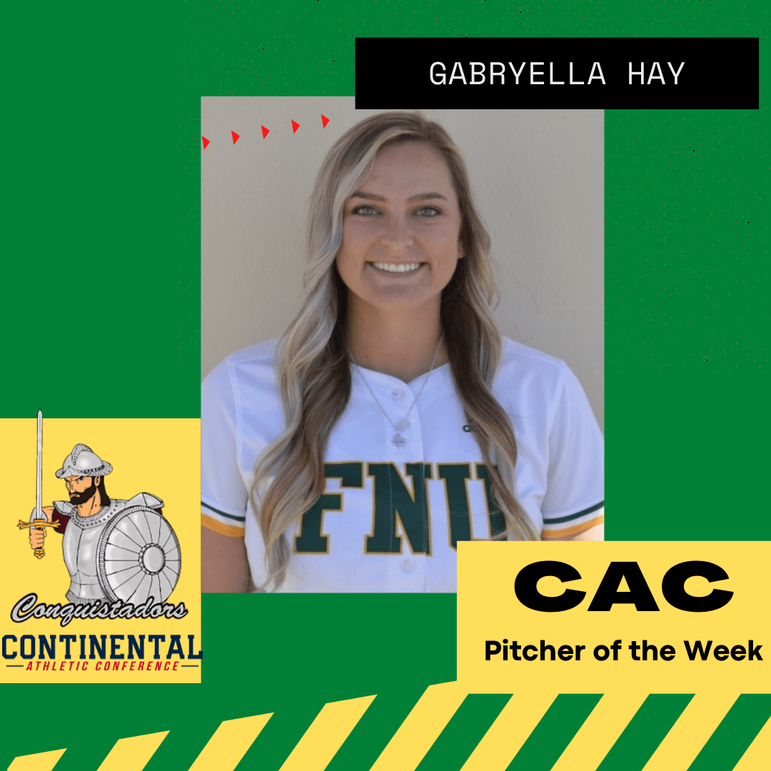 Florida National University Senior Gabryella Hay has earned the Continental Athletic Conference pitcher of the week award.